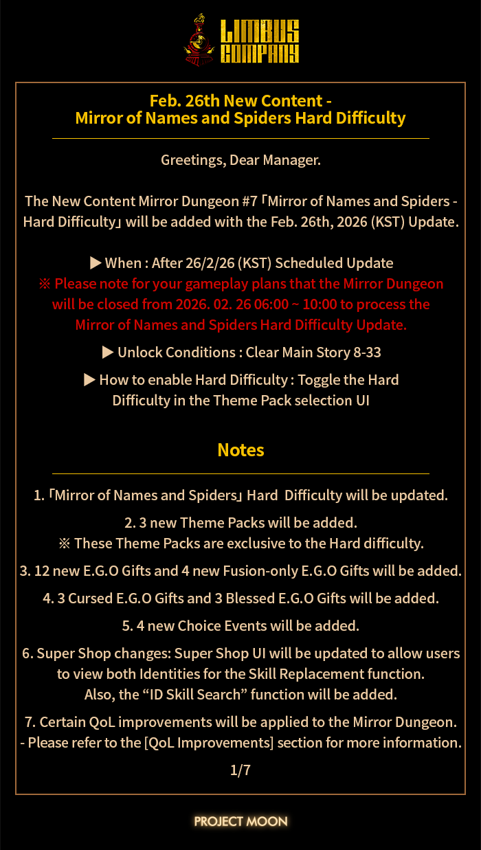 Feb. 26th New Content - Mirror of Names and Spiders Hard Difficulty