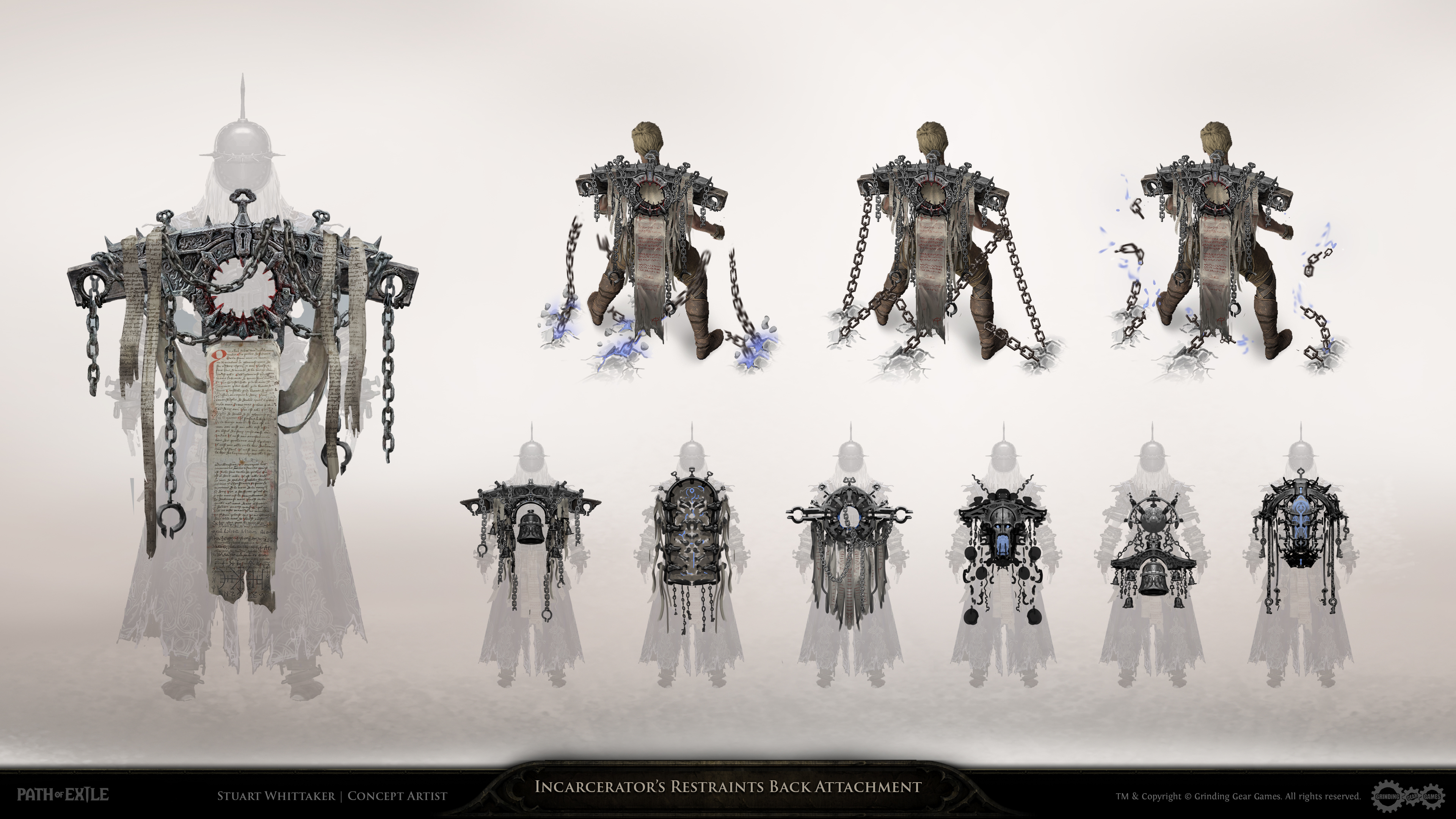 In today’s post, we’ve gathered some pieces of concept art for the Iron Incarcerator Series Supporter Pack launched alongside the Mirage League. Check them out below!Elite Iron Incarcerator Armour PackIncarcerator's Restraints Back AttachmentEternal Incarceration Map DeviceThe Iron Maiden PortalIncarcerator's Mesmer Pet
