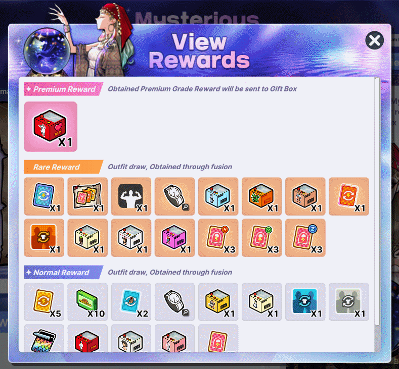 → You can obtain random Normal/Magic Grade outfits through the draw.