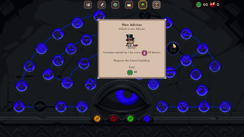 Banker — Gain +1 morale per 10 Denarii.