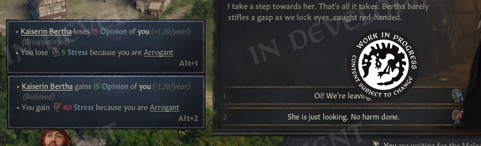 We can now display the names of characters appearing in events, along with their relationship to us, which makes it much easier to understand who everyone is at a glance. Here we also want to give a big shoutout to another modder, FUN, for the original idea (and a small one to Starving as well for adding opinions). Good design.