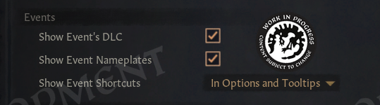 Nameplates are optional and are disabled by default. We can enable them in the settings menu, where we also have the option to display shortcut numbers directly on event options.