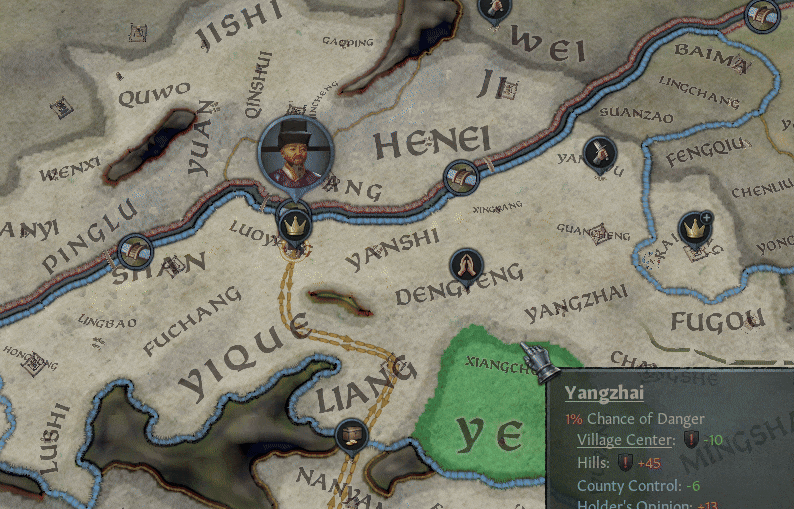 We also track county changes here, showing culture promotions over time. In this example, the data comes from a save in 1125.