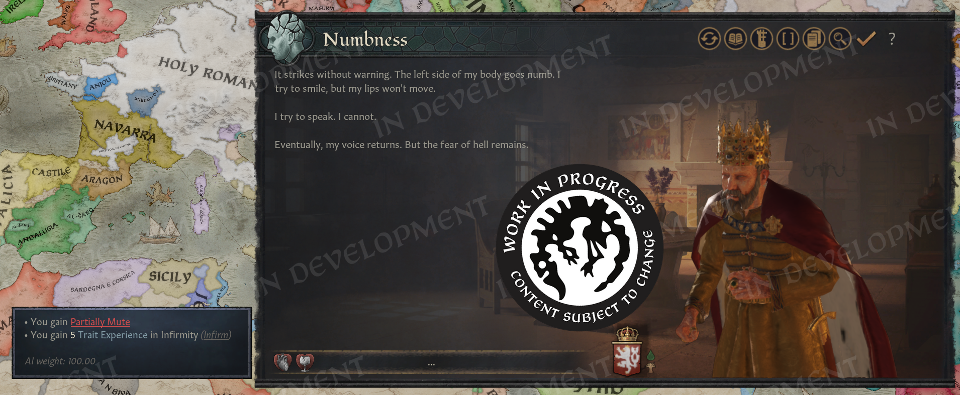 There are two problems with growing old in CK3 that I’ve wanted to change for a long time; there are very few complications of aging, and the ones that exist are immediately debilitating. For example, one day your character is a spry, capable warrior - and the next day, they’re infirm and basically good for nothing but waiting for death to claim them. Also, that’s basically the only consequence - infirmity - which represents both the deterioration of mind and body at once. Not very fun, and feels unfair from a challenge perspective.