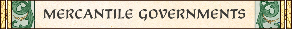 The new merchant government form is inspired by the many important mercantile families that existed throughout the medieval world, and these were not necessarily tied to a specific piece of land or state. Think of the Jewish families in Cairo that traded goods far and wide, or the trade guilds of southern India.