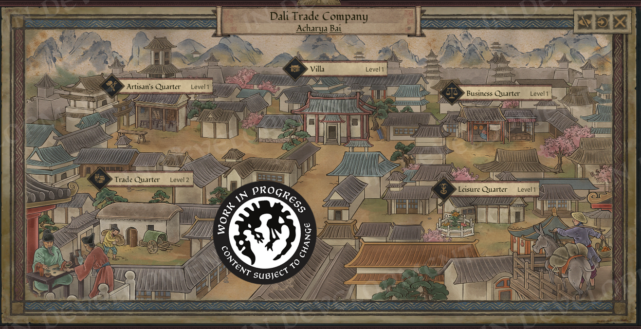 While as a merchant, you do not own land, unlike your republic peers, you are still situated in and around a city. You are a landless character with a domicile in your home city and the local ruler as your patron. It will be possible to change the location of your domicile, but it is not supposed to be a regular occurrence, as it is going to be the heart of your little budding trade empire. All trade routes you establish as a merchant will use the domicile location as their starting point.