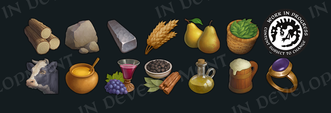 I won’t give you a full list of all our new trade goods right now, but you can see a selection below (we have just short of 50 trade goods in total).