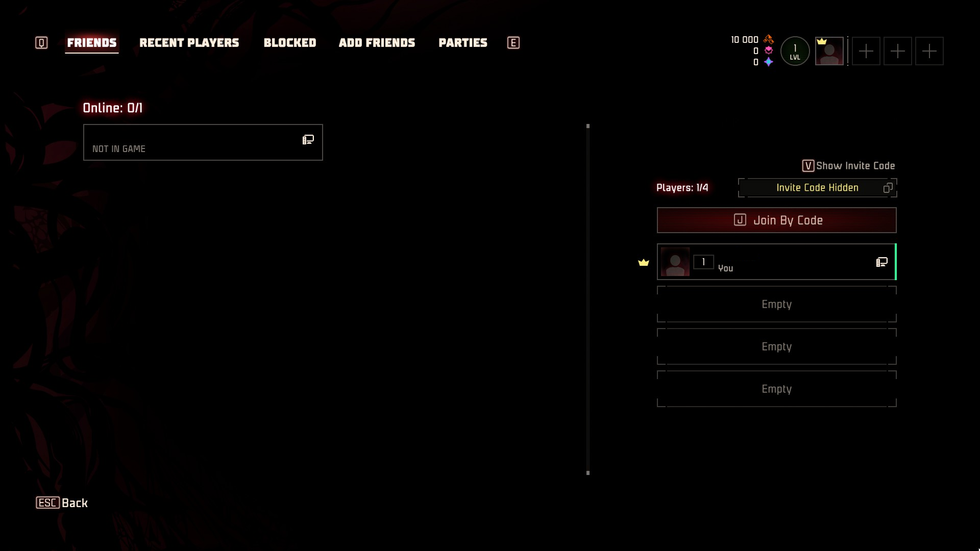 Your friends must enter the code in the same menu by pressing "Join by code" ("J" by default).