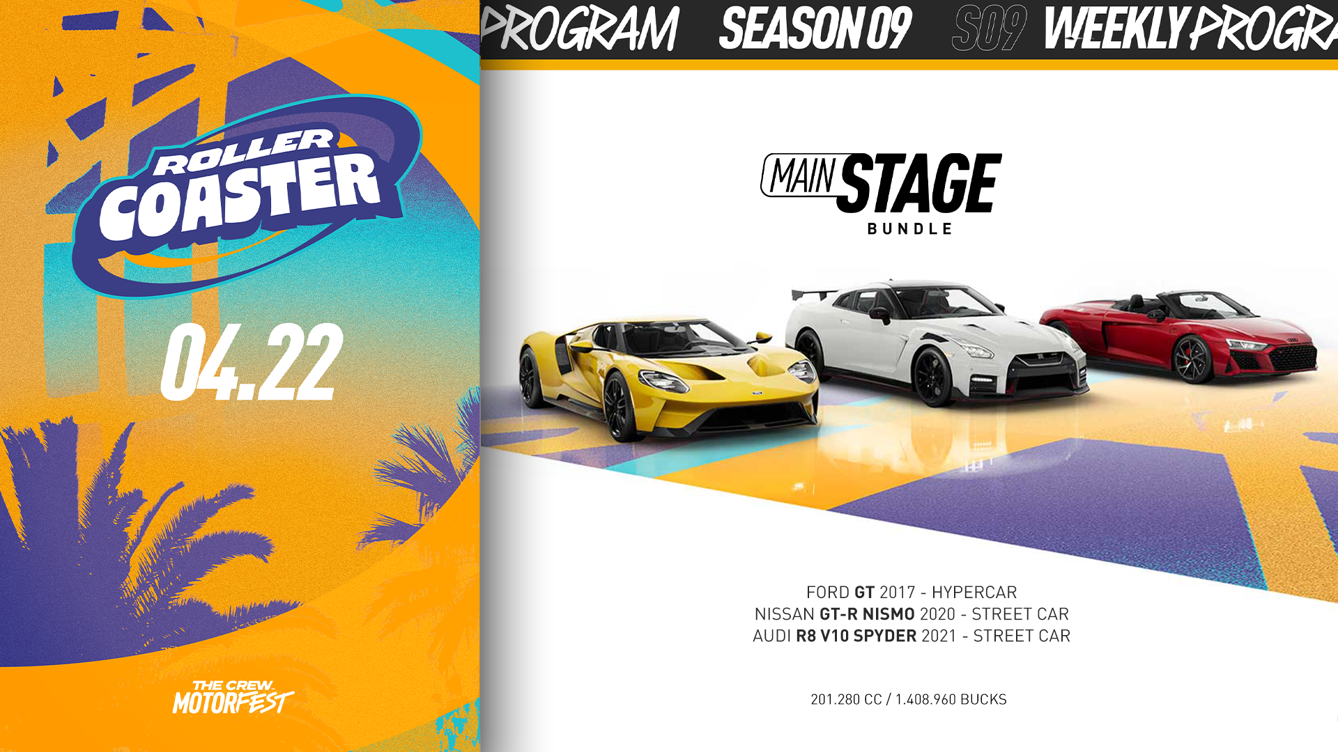 Roller CoasterWelcome to “This Week in The Crew” article! Every week, we bring the news of the weekly novelties in The Crew Motorfest to you to help get you started!SUMMIT CONTESTSummit InfoNameActivitiesConstraintsKeep Rollin'Porsche 911 GT3 RS Weissach Package \[Loan]TOTW: Nitro RoundaboutThe Night AfterNissan GT-R NismoDuck and RollAudi R8 Spyder \[Loan]Rollin' on the RiverAudi R8 SpyderSkillSlalomNissan GT-R NismoLet the Good Times RollFord GTHeads A'RollInsane SlopeAudi R8 SpyderSkillSpeedtrapNissan GT-R NismoRollin' AroundUp and DownFord GTVANITY ROTATIONHere are the vanities that are in rotation this week! Grab them while you can!VanityCrew CreditsFireworks Nitro25,000Party Sparks Smoke70,000Pink Sideblade Underglow40,000Neon Pink Tire40,000Neon Waves Underglow40,000Cyan Smoke25,000Colored Ribbon Nitro25,000Colored Ribbon Smoke40,000Finally, here is our Community Roundup!COMMUNITY ROUNDUPTCM photo by spydervice_ (Discord)TCM photo by BaroWest (Reddit)TCM photo by elayib (Twitter/X)For more information on The Crew®, check our official website. Join the The Crew® community on Reddit, TC Social, and Discord - and be sure to follow us on Twitch to never miss a livestream.