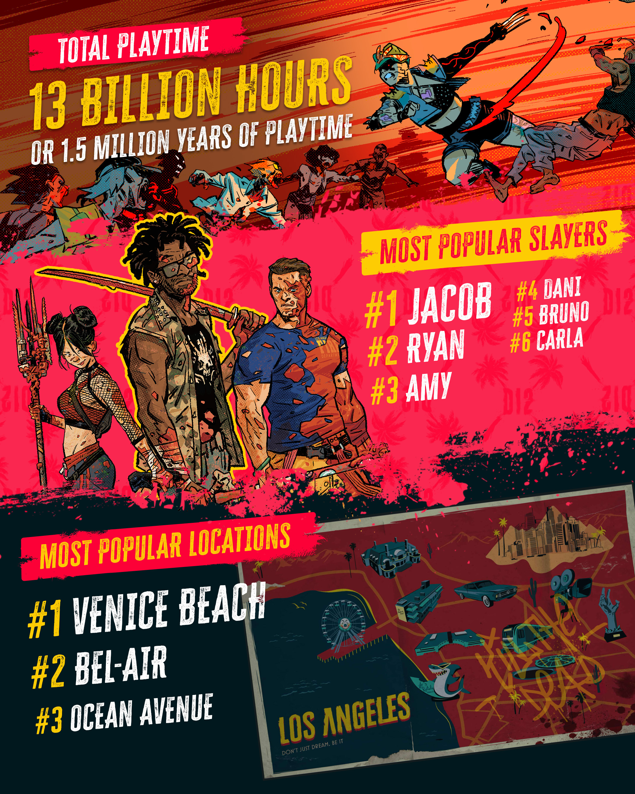 It’s been three years since the gates of HELL-A swung open. Since then, millions of Slayers have turned the City of Angels into a glorious, gore-soaked playground. To celebrate three years of carnage, we’re dropping a massive infographic, bringing the complete series bundle to consoles, and sending some of our… "eccentric" locals on a little field trip.HELL-A by the numbersYou’ve been busy. Very busy. Whether it’s creative limb removal or testing the structural integrity of a zombie's skull with a car battery, we’ve been keeping track. Check out our anniversary infographic to see the sheer scale of the chaos you’ve caused over the last three years. A Change of Scenery: Quarantine Zone CrossoverIt seems some of our more… eccentric locals are looking for a vacation. Five familiar HELL-A faces are heading over to Quarantine Zone in a free update dropping today!Head over to Quarantine Zone now to see who made the cut.https://store.steampowered.com/app/3419520/Quarantine_Zone_The_Last_Check/The outbreak isn't over. See you in the streets.Follow us on social media:???? Twitter???? Instagram???? Facebook