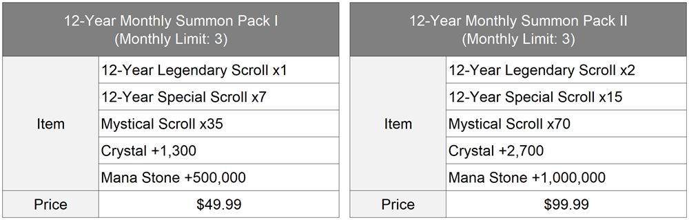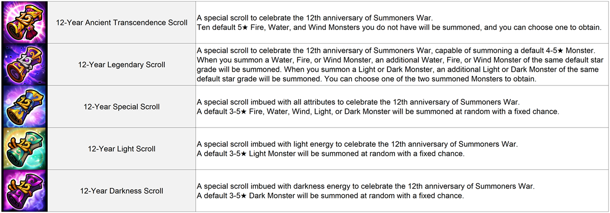 * \[Blessing of Summon and Splendid Blessing of Summon] do not apply to 12-Year Legendary Scrolls and 12-Year Ancient Transcendence Scrolls.