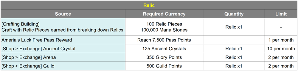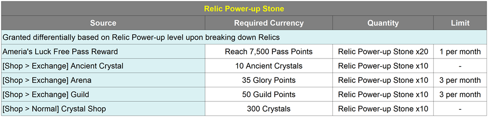 : Relic Power-up Stones and Mana Stones are consumed for powering up Relics. Relic Power-up Stones can be obtained through the following methods.