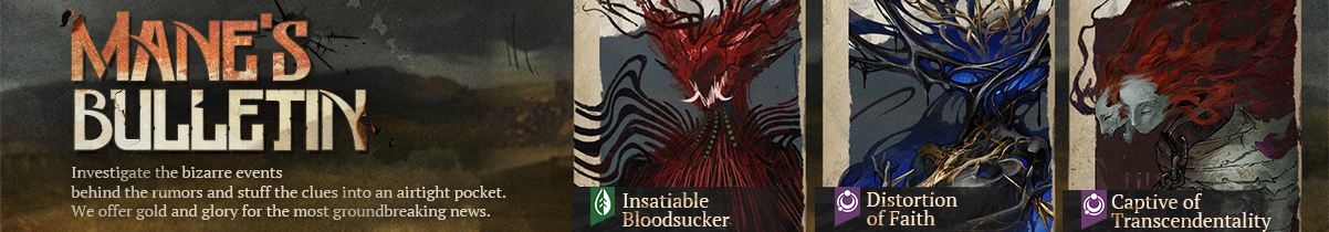 \[Event Intro]: Investigate the bizarre events behind the rumors and stuff the clues into an airtight pocket. We offer gold and glory for the most groundbreaking news. Investigation Targets: \[Insatiable Bloodsucker], \[Distortion of Faith], \[Captive of Transcendentality].