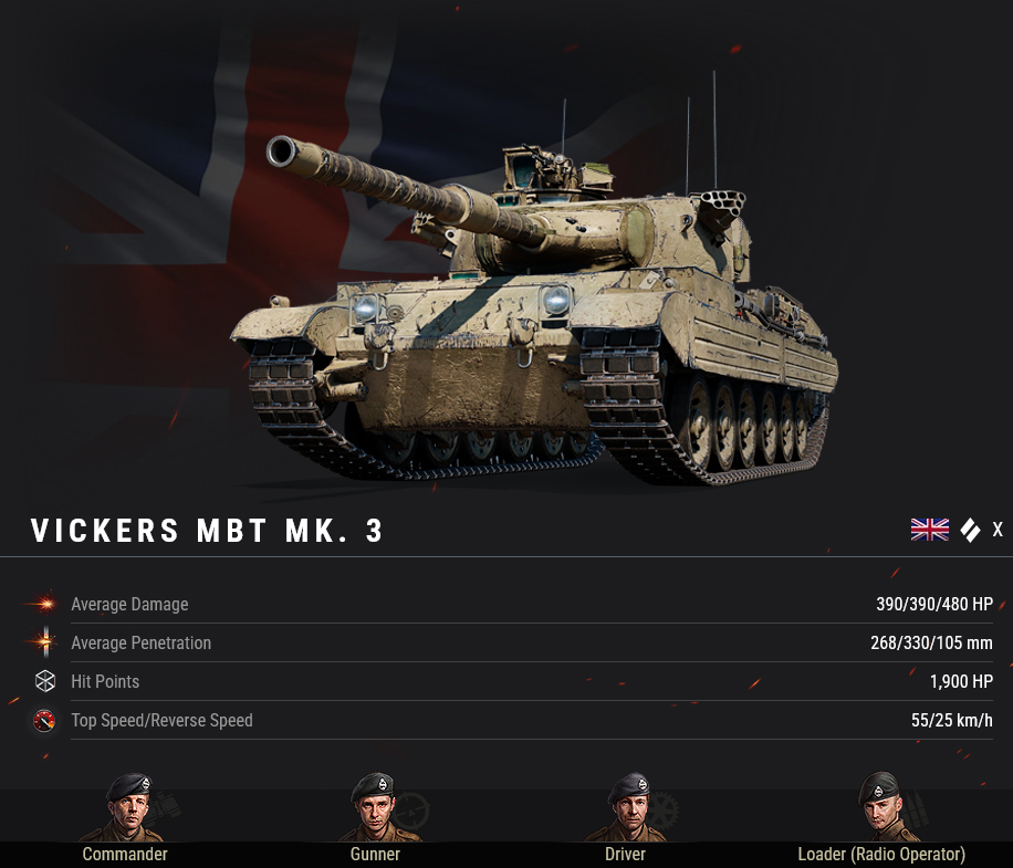 The Vickers MBT Mk. 3 requires concentration and tactical awareness (especially at mid-range), but can be highly rewarding when you take advantage of its swift movement and highly accurate gun. Its 2,925 HP/min of DPM is exactly what a quick, precise tank like this needs to be threatening to your opponents.