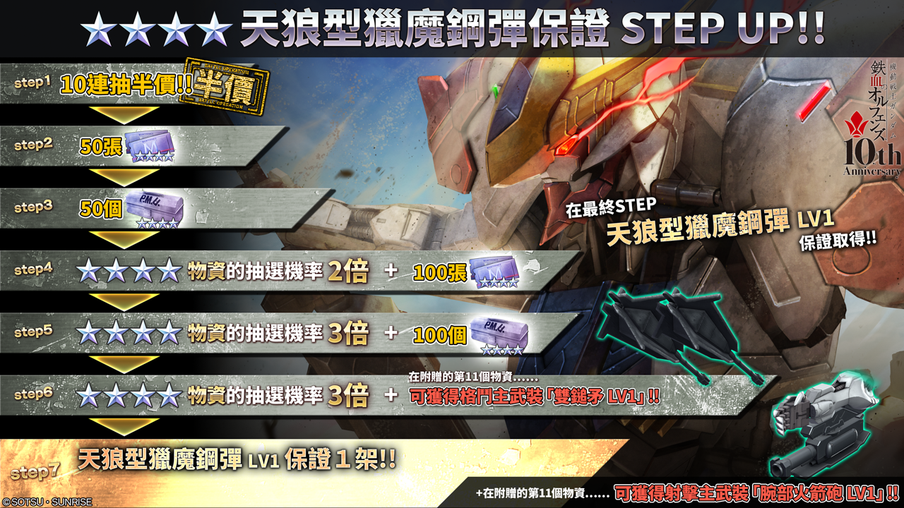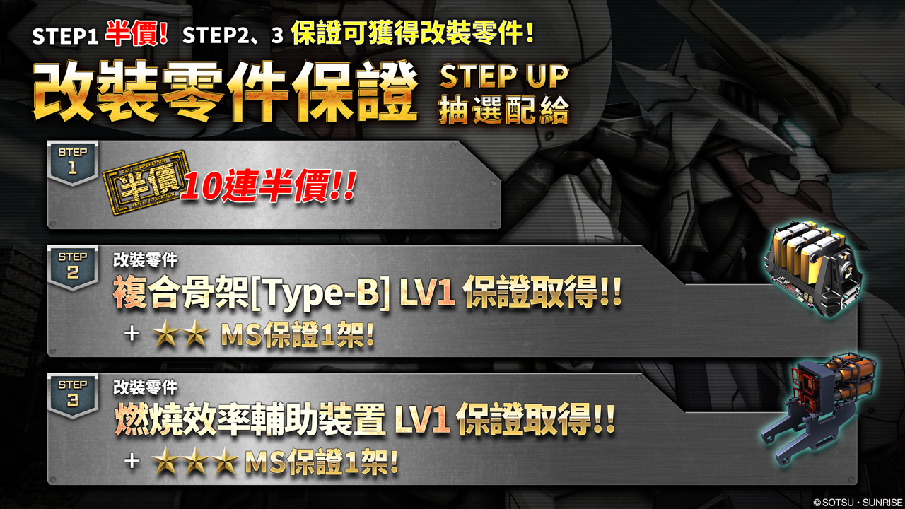 以及可取得與天狼型獵魔鋼彈相性絕佳改裝零件的STEP UP抽選配給。