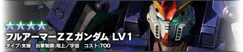 ★★★★ 全裝甲ZZ鋼彈 LV1 (支援機、地上/宇宙兩用、成本值700)
