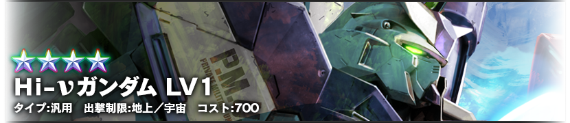 ★★★★ Hi-ν鋼彈 LV1 (泛用機、地上/宇宙兩用、成本值700)