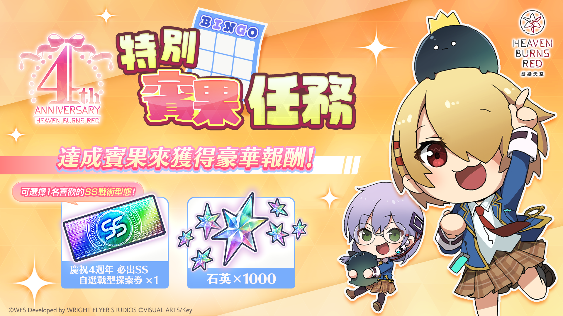 為了慶祝緋染天空 Heaven Burns Red 4th Anniversary,將實施「緋染天空 4th Anniversary 特別賓果任務」!